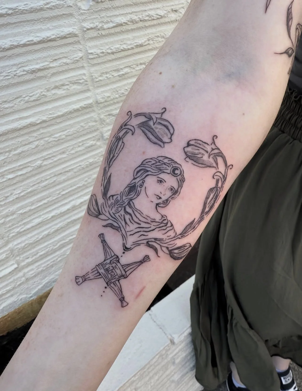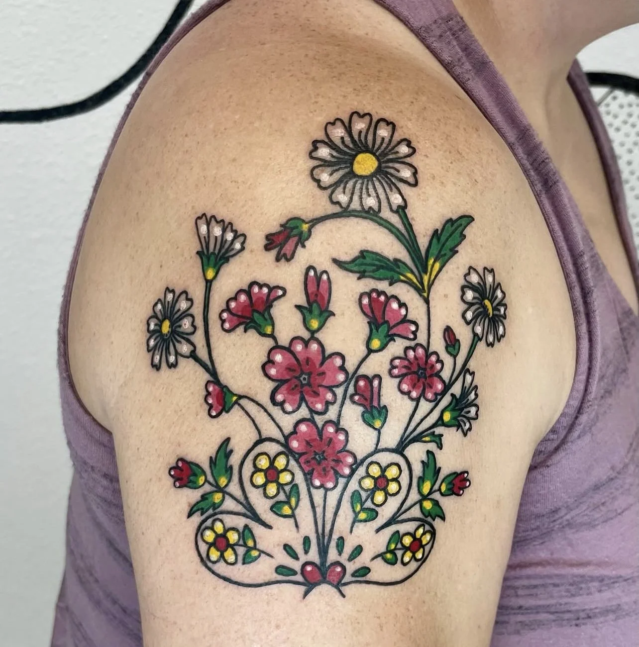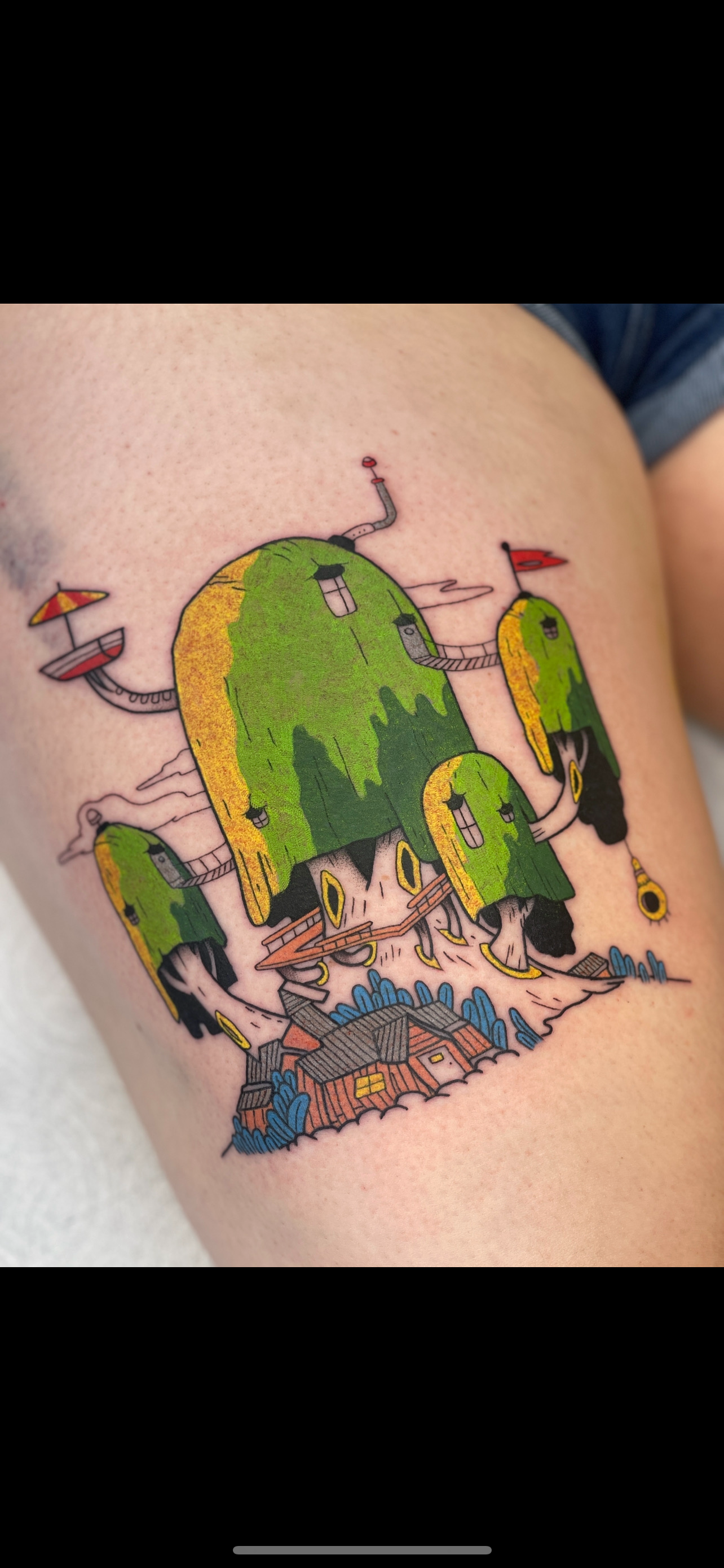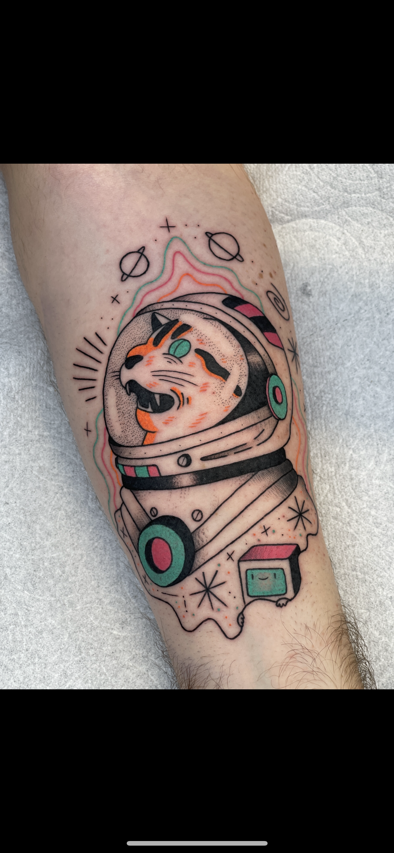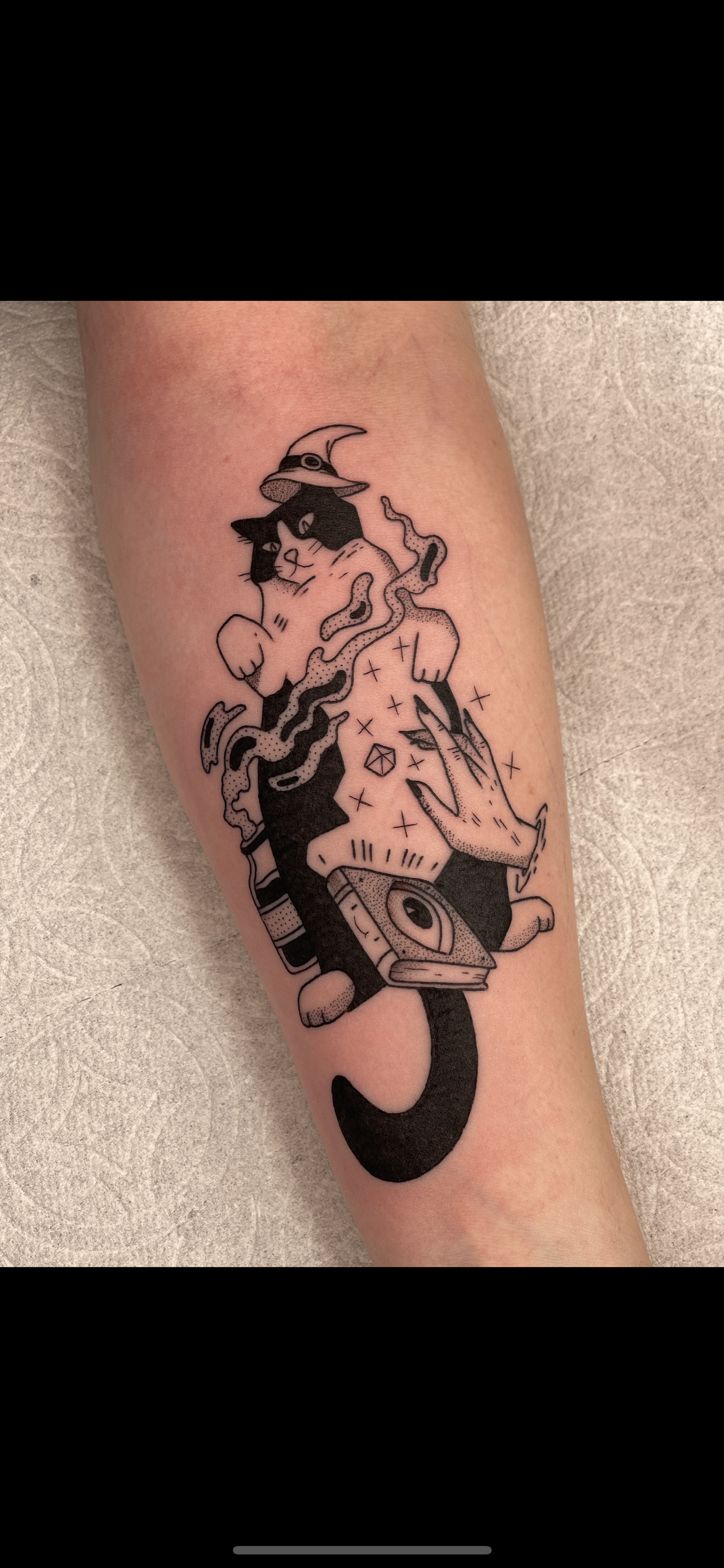 BURDXTURD Josh specializes in cartoons, clean lines, cats and color. PEGGYPANTZ Folky fun, black and white floral, bright colors and cute animals. SKETCHY BRYANT Black and Grey traditional. BEEZLBUG Fine line witchy vibes.